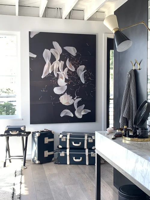 are painterly photographs of contemplative moments that capture a love affair that has taken its course. From the voluptuous juiciness of figs to the stark emptiness of the bottles, the series represent simple moments that convey the twists and turns of love. Printed on brushed aluminum, these works bring a modern twist to old master techniques used in the long tradition of still life paintings.